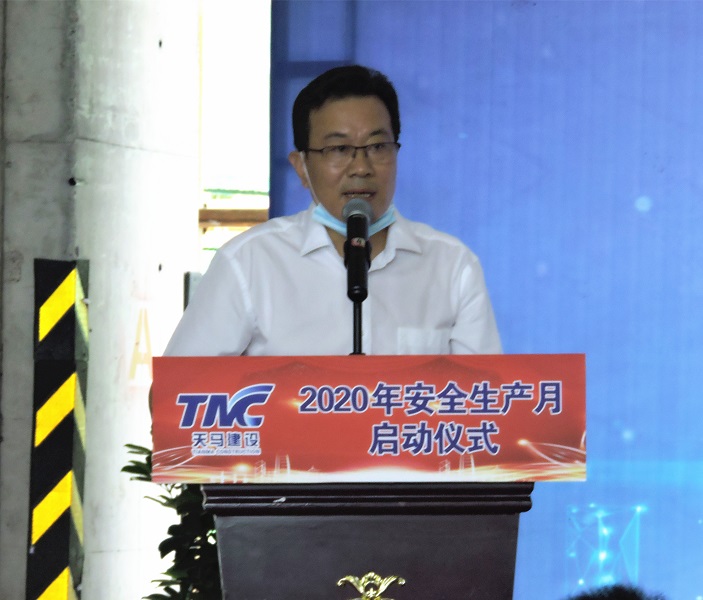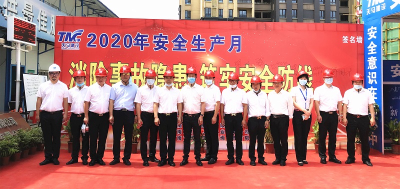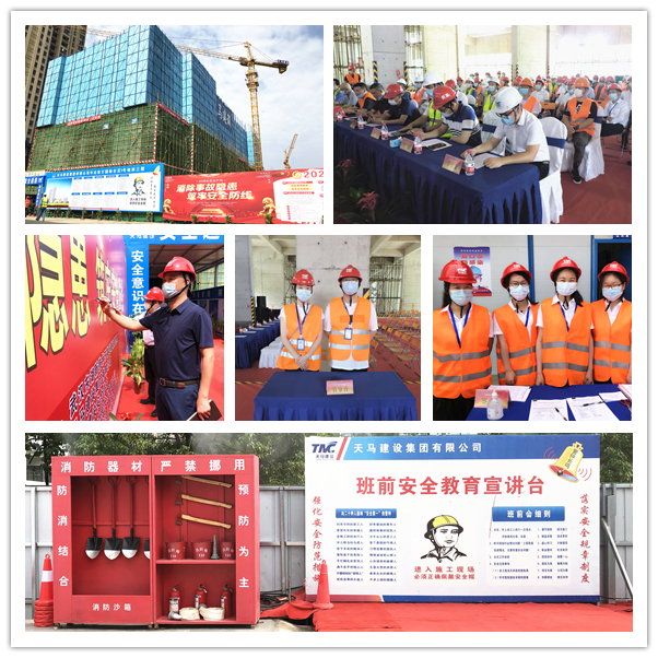 今年是第19個(gè)全國(guó)“安全生產(chǎn)月”,主題是“消除事故隱患、筑牢安全防線(xiàn)”。為了推進(jìn)本年度“安全生產(chǎn)月”活動(dòng)的有序開(kāi)展,進(jìn)一步提升集團(tuán)安全文明施工管理水平,營(yíng)造出良好的安全生產(chǎn)氛圍,6月5日上午,武漢東湖高新住建局及天馬建設(shè)集團(tuán)2020年“安全生產(chǎn)月”啟動(dòng)儀式,在我司承建的中冶南方國(guó)際社區(qū)三期項(xiàng)目部隆重舉行。東湖高新區(qū)住建局張蓉局長(zhǎng),東湖高新區(qū)建管站站長(zhǎng)王萬(wàn)連,武漢建設(shè)安全協(xié)會(huì)秘書(shū)長(zhǎng)李祥林,中冶南方安全生產(chǎn)部部長(zhǎng)司良,中冶南方(武漢)置業(yè)總經(jīng)理閆雙,天馬建設(shè)集團(tuán)總經(jīng)理高昌盛、監(jiān)事會(huì)主席張幼明、紀(jì)委書(shū)記李華彪、工會(huì)主席余勝利等及有關(guān)單位共計(jì)120余人出席了會(huì)議。
