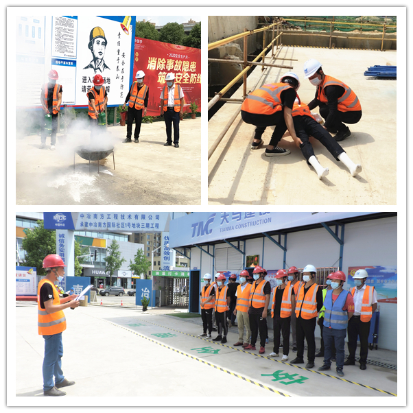在啟動(dòng)儀式結(jié)束后,由中冶南方國(guó)際社區(qū)項(xiàng)目安全主管徐國(guó)良進(jìn)行安全生產(chǎn)月教育培訓(xùn)宣講,并開(kāi)展施工現(xiàn)場(chǎng)高處墜落應(yīng)急救援演練,模擬火災(zāi)狀況并講解防火常識(shí)及滅火器材的使用,以及模擬突發(fā)受傷狀況并講解救援常識(shí)及注意事項(xiàng)。