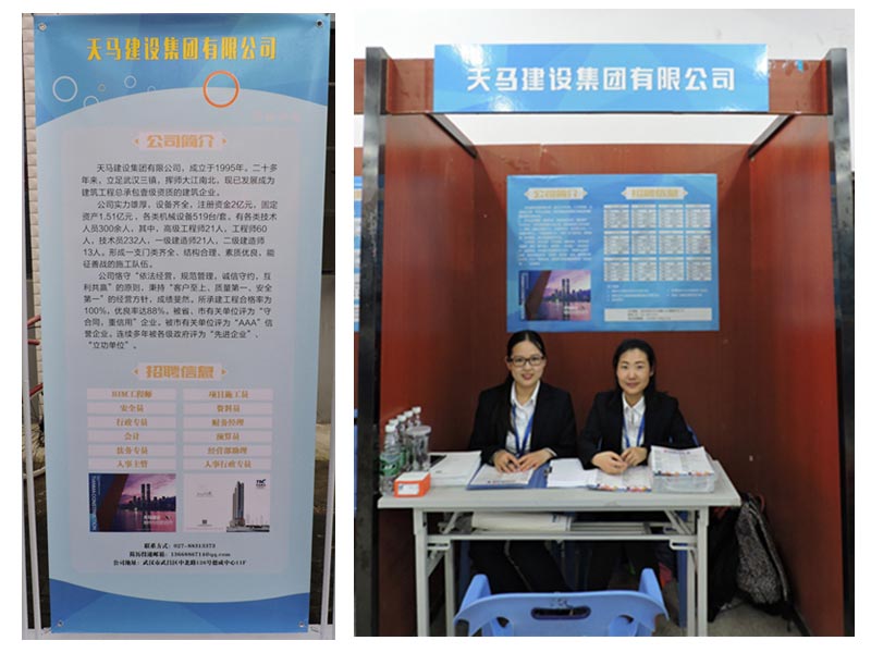 董事長馮義橋和執(zhí)行總經(jīng)理高昌盛出席了活動,并履行社會責(zé)任,大力支持百萬大學(xué)生留漢創(chuàng)業(yè)就業(yè)計(jì)劃,在就業(yè)大樓招聘廳開設(shè)天馬建設(shè)招聘專區(qū)招攬高素質(zhì)人才。提供12個崗位信息,現(xiàn)場達(dá)成近40個就業(yè)意向。