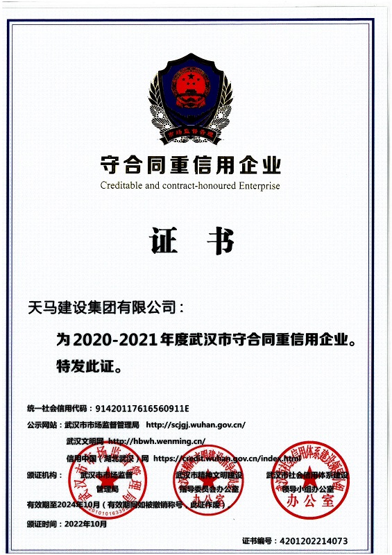 天馬建設(shè)連續(xù)十二年獲評(píng)守合同重信用企業(yè)