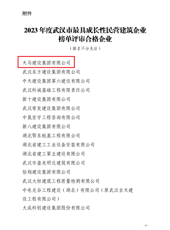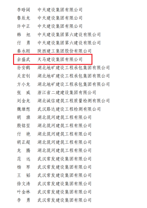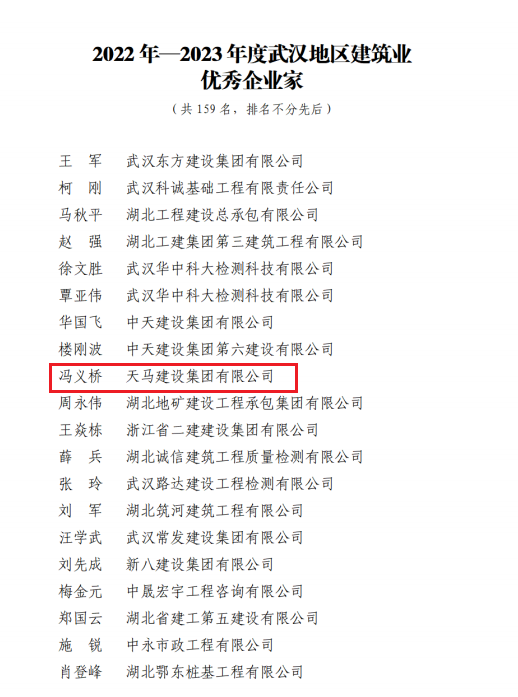 近日,天馬建設(shè)集團(tuán)榮獲2023年度武漢市最具成長(zhǎng)性企業(yè)和2022-2023年度武漢地區(qū)建筑業(yè)優(yōu)秀企業(yè),集團(tuán)黨委書記、董事長(zhǎng)馮義橋獲“優(yōu)秀企業(yè)家”,集團(tuán)總工程師劉剛獲“優(yōu)秀總工程師”,余勝武獲“優(yōu)秀項(xiàng)目經(jīng)理”。